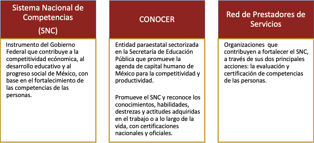 Somos una Entidad de Certificación y Evaluación de Compentencias (ECE) acreditada por el Consejo de Normalización y Certificación de Competencias Laborales (CONOCER), que tiene como objeto contribuir en el desarrollo de personas competentes que incrementen sus habilidades y fortalezas y, consecuentemente, hagan más productiva nuestra sociedad.